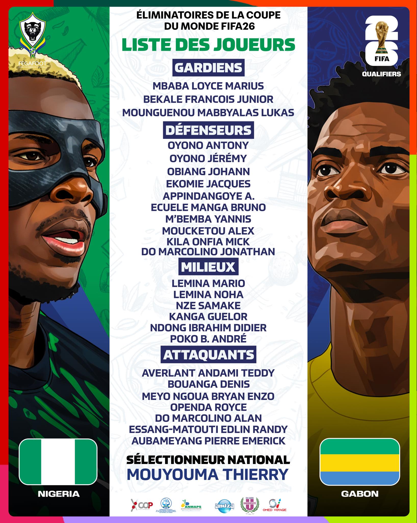 Thierry Mouyouma, le sélectionneur du Gabon, a opté pour la continuité dans sa liste de joueurs en prévision du match décisif contre le Nigeria le 13 novembre à Rabat, comptant pour les barrages de la Coupe du Monde 2026.